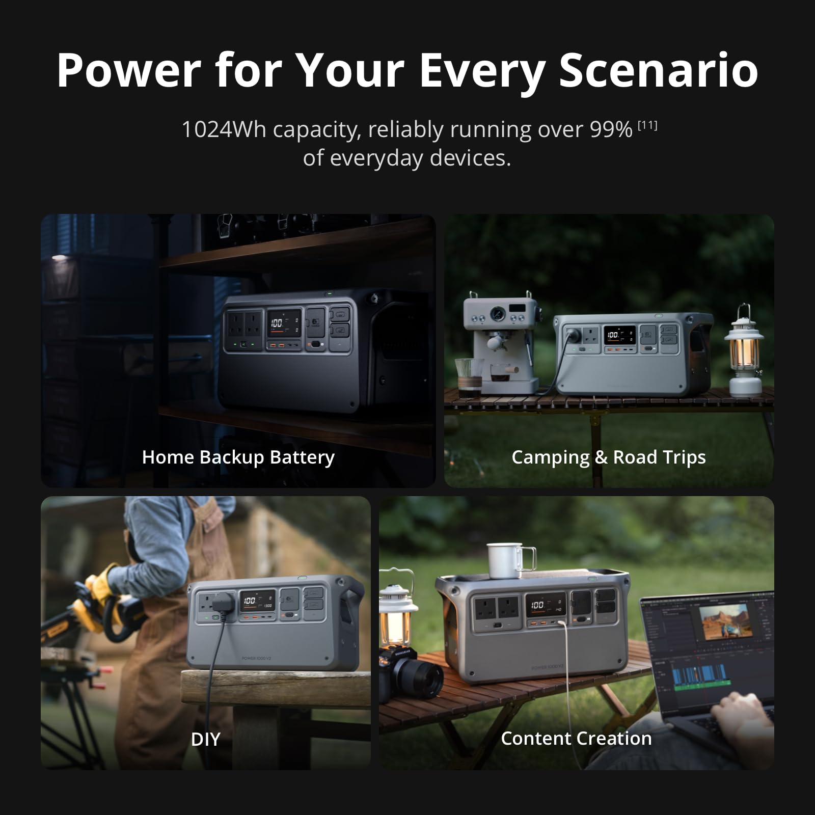 - Power More Than Ever - DJI Power 1000 V2 is a high-capacity solar generator that powers 99% [11] of appliances like kettles, cookers, projectors, saws, and drills—ideal for camping, DIY, and outdoor work.