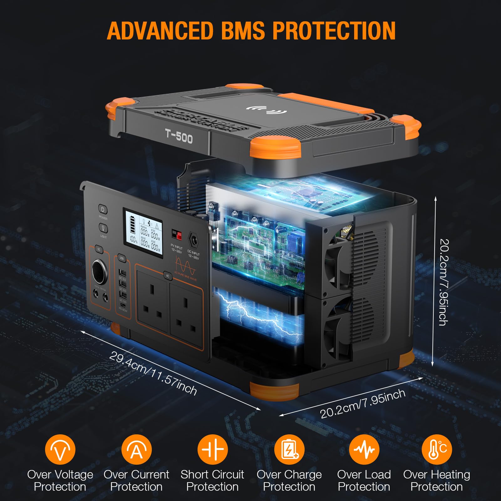 GRECELL Portable Power Station 500W(Peak 1000W), 519Wh Outdoor Solar Generator Backup Battery Pack with 2 230V AC Outlets, 500W 10-Port Powerhouse for RV/Van Camping Road Trip Home Emergency, T-500